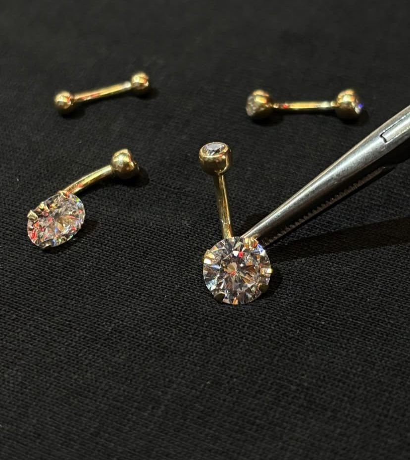 Bananabell de 14 quilate de ouro com uma joia central semelhante a um diamante lapidado. Piercing de rosca interna, que permite ao utilizador retirar e colocar quando quiser. Refinada e Ousada são palavras que refletem bem a imagem delicada desta peça única de perfuração. Encomenda e desfruta 🙂