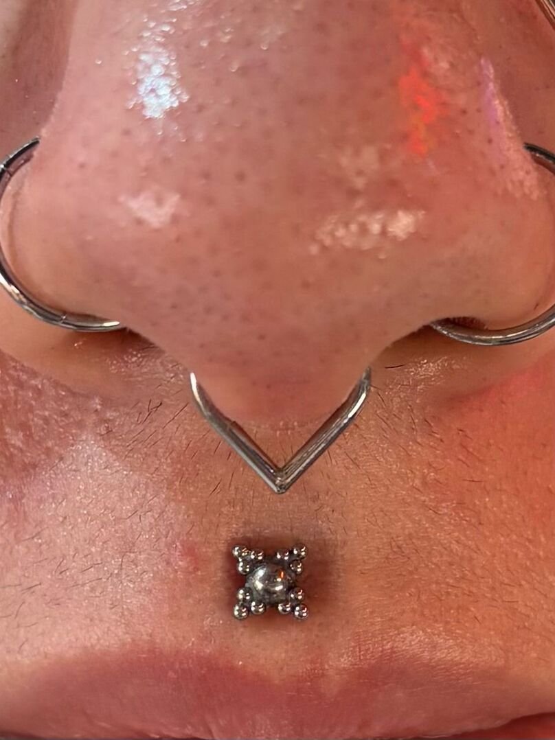 Esta Argola funde um formato Tradicional Redondo e Fechado com um Triangular Inovador. A sua estética de uma cor só dá um toque fluido ao visual do piercing, que realça o estilo Moderno com um acabamento Polido e Brilhante.