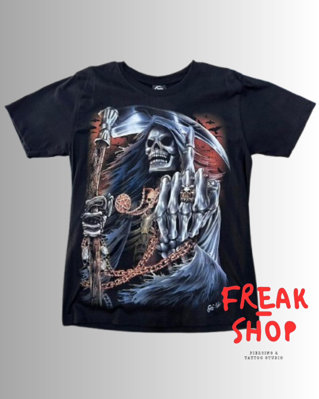 T-shirt para um estilo rebelde e audaz. Uma representação da morte no teu outfitt. Garante já esta peça de vestuário única!!!